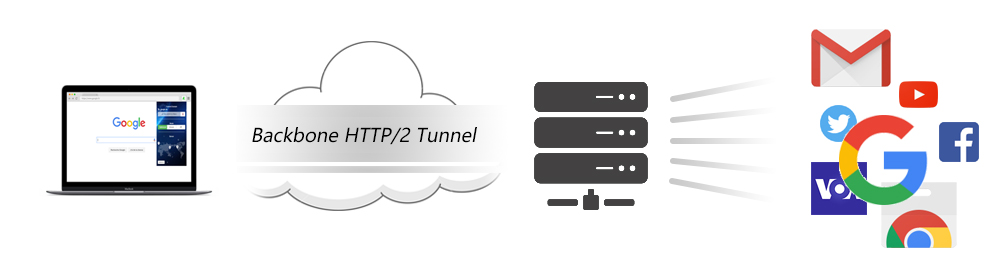 Maikr create a highly encrypted HTTP/2 Tunnel with Maikr Servers in internet backbone thus speedup and secure your network connection.